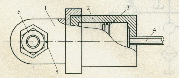 1-過濾器;2一定量液壓泵;3二位四通手動換向閥;4-溢流閥;5一液壓缸;6壓力表